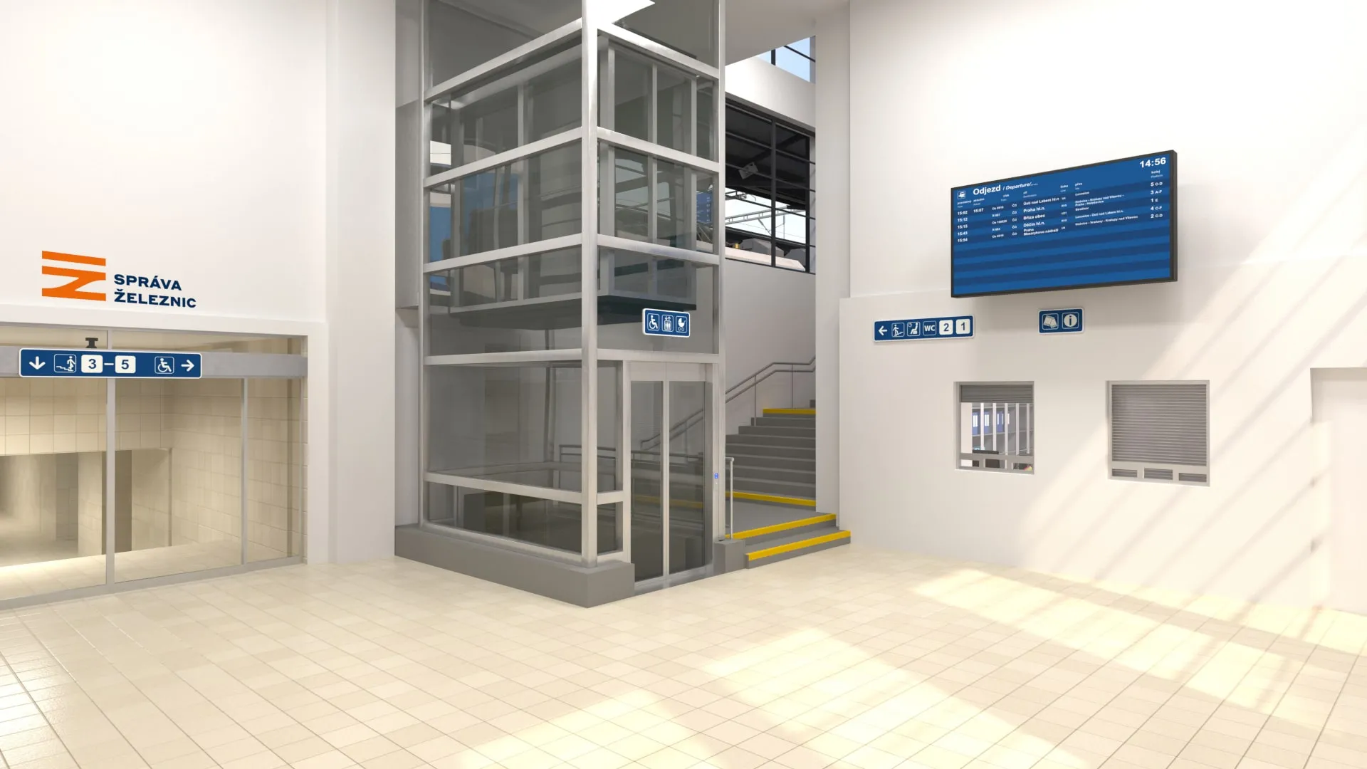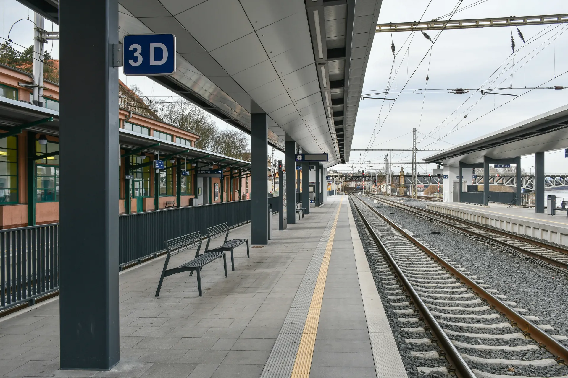 Místo stávajících úrovňových nástupišť bylo zřízeno jednostranné ostrovní nástupiště s přístupem schodištěm a výtahem ze stávajícího podchodu.
