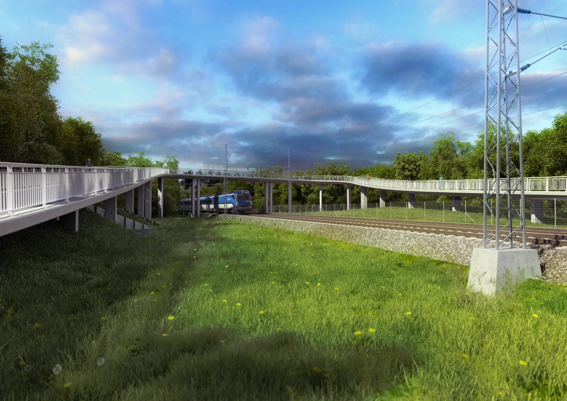 Součástí stavby je mimo řešení rekonstrukce deseti mostů (včetně pěti podchodů), a devíti propustků, výstavba dvou lávek nad tratí i tzv. estakáda Vrskmáň, dvoukolejný most o délce 418 m (délka přemostění 387,5 m) o 13 otvorech a 26 nosných prefabrikovaných konstrukcích typu PSKT 30. Nejvyšší pilíře dosahují výšky 15,5 m