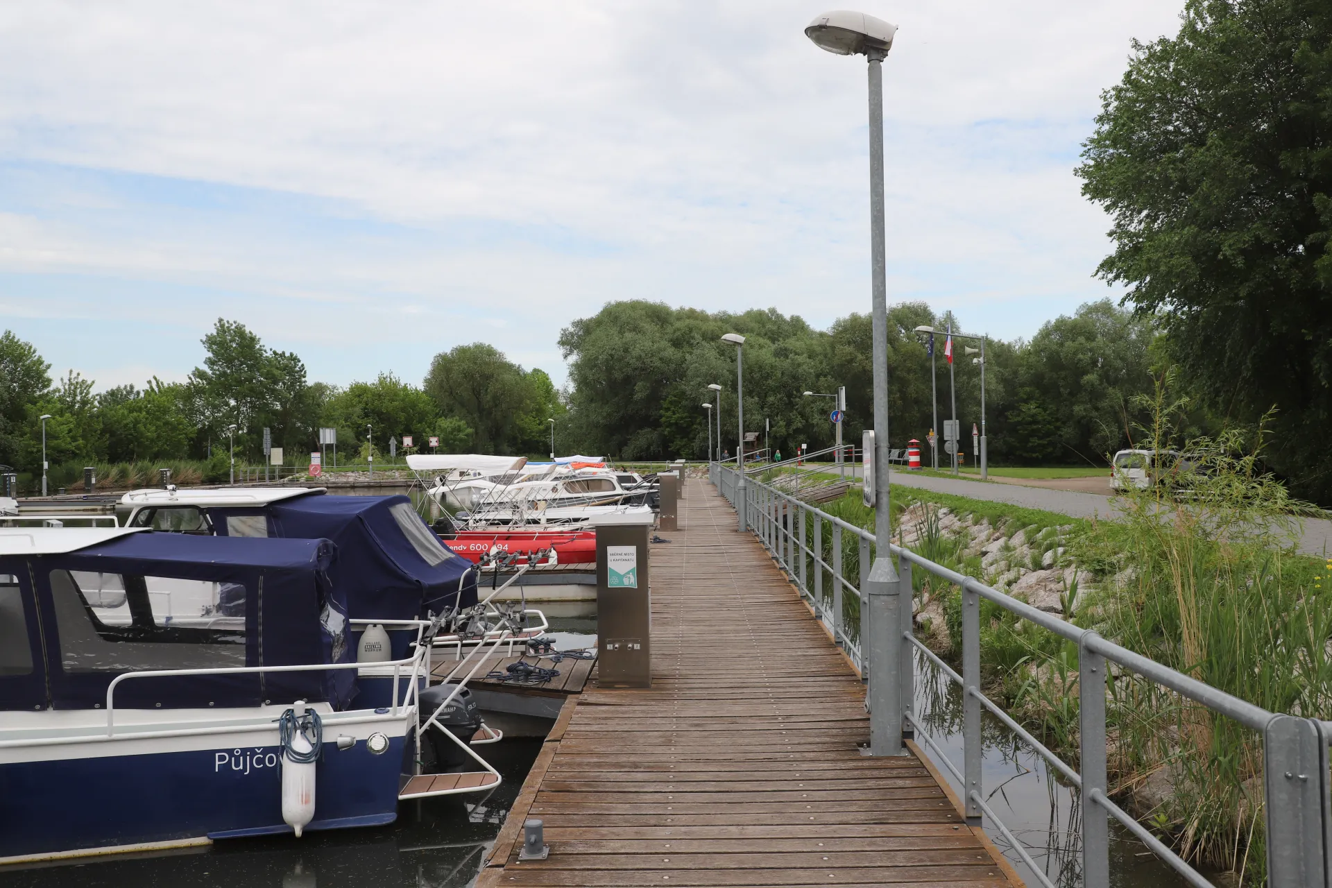 Přístavní mola umožňují přístup k jednotlivým stáním pro plavidla. Délka hlavního mola je 175,3 m, šířka pak 2 m. Přístup na hlavní molo bude realizován pomocí tří přístupů ve formě šikmých plošin. Z hlavního mola vybíhají jednotlivé výložníky, které tvoří boxy pro stání plavidel. V každém boxu bude umožněno stání pro dvě plavidla. Výložníky pro velká plavidla jsou o délce 6 m, výložníky pro malá plavidla pak 4 m. Šířka boxu pro velká plavidla (10*3,5 m) je 7,5 m, pro plavidla 8*3 m je šířka boxu 7 m a pro malá plavidla je šířka boxu 6 m.